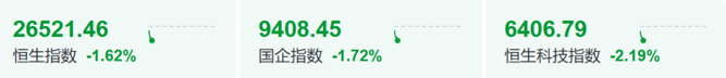 10月8日,港股早间开盘走低。恒生指数低开0.21%,恒生科技指数跌0.11%,恒生国企指数跌0.09%。上午港股跌幅持续扩大,截至发稿,恒生科技指数跌超2%。