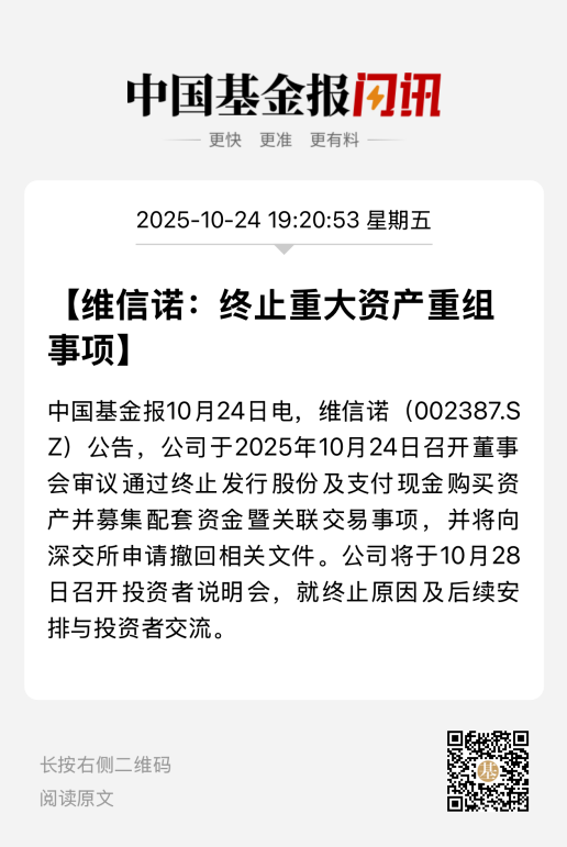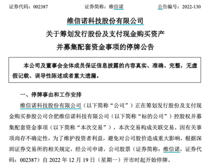 10月24日晚,维信诺发布公告,决定终止拟向合肥合屏投资有限公司(以下简称合屏公司)、合肥芯屏产业投资基金(有限合伙)(以下简称芯屏基金)、合肥兴融投资有限公司(以下简称兴融公司)发行股份及支付现金收购合肥维信诺科技有限公司(以下简称合肥维信诺)40.91%股权的交易,并向深交所申请撤回全部申请文件。