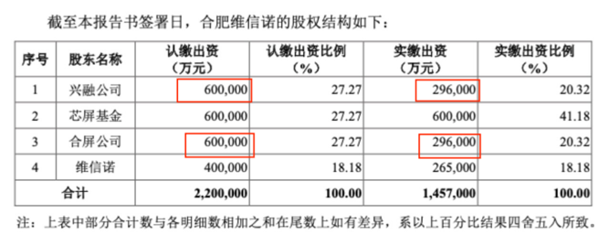 当年9月,维信诺设立合肥维信诺,仅三个月后便引入三家合肥国资股东——合屏公司、芯屏基金、兴融公司。