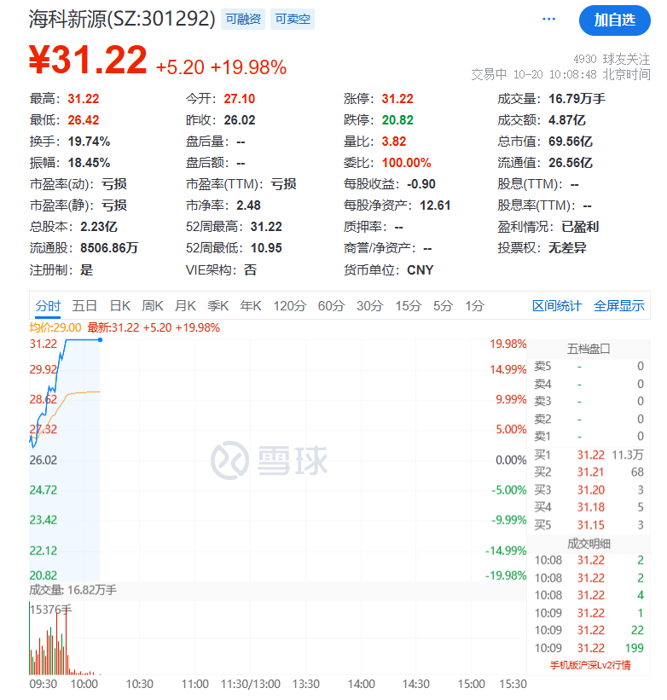 锂电池、固态电池概念股震荡走强,海科新源20%涨停,华盛锂电、多氟多、天赐材料等跟涨。