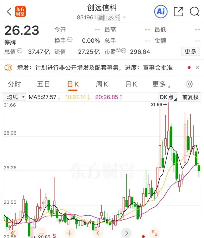 因筹划此次交易,创远信科股票自2025年9月16日起停牌。截至9月15日收盘,创远信科报26.23元/股,总市值为37.47亿元。