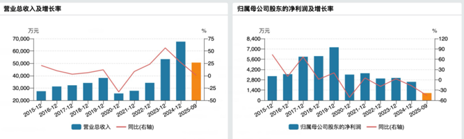 截至2025年前三季度,公司实现营业收入5.06亿元,较上年同期增长0.58%;但净利润仅为990.33万元,较上年同期大幅下降45.92%,仍未摆脱“增收不增利”的局面。