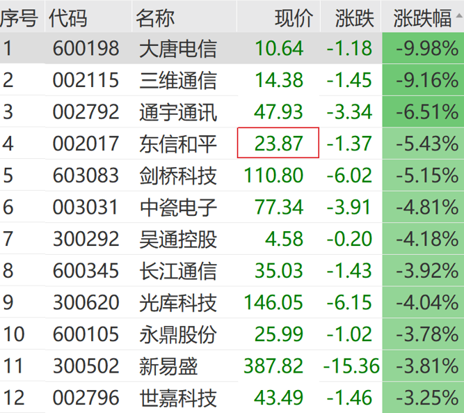 通信板块震荡走低