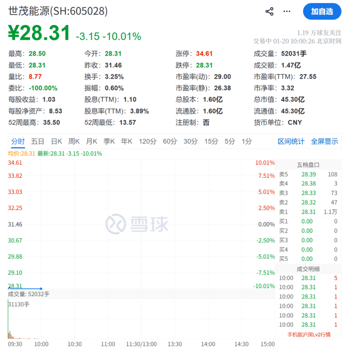 世茂能源昨日复牌后跌停,今日继续跌停。