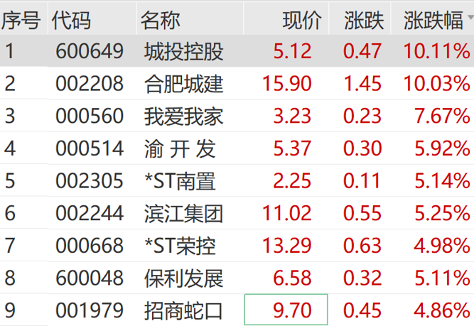 房地产板块拉升