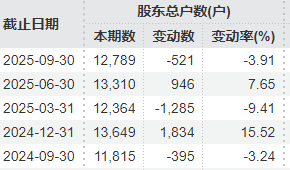截至2025年三季度末,*ST熊猫共有1.3万户股东。