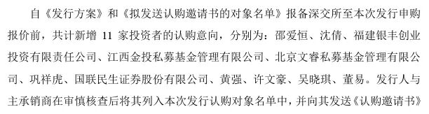随后,在发行申购报价前,又新增了11家投资者的认购意向。从最后的认购结果来看,这次新增的11家投资者,有8家最终获配,其中自然人占七席。