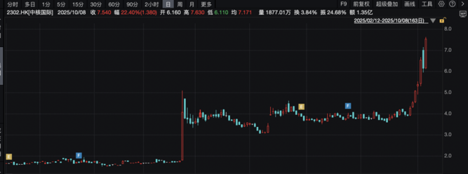 10月8日,核电股涨幅居前,中核国际涨22.40%。