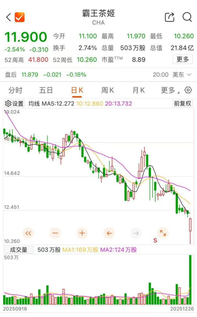 12月27日上午,“霸王茶姬大跌”冲上微博热搜榜第一。