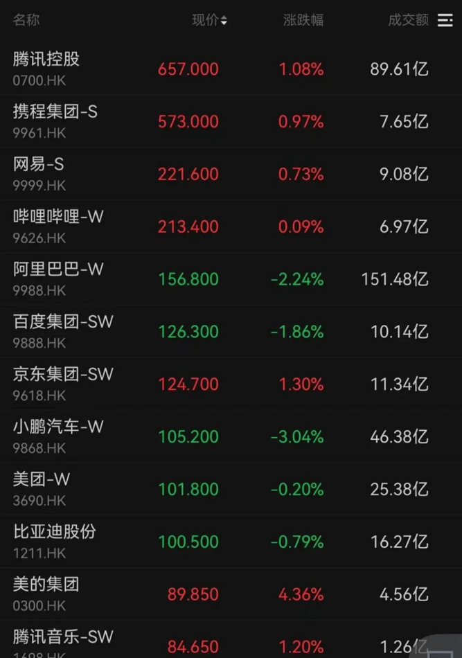 恒生科技指数小幅收涨0.16%,成份股涨跌不一。腾讯控股、携程集团、京东集团分别上涨1.08%、0.97%、1.30%,阿里巴巴、百度集团、美团分别下跌2.24%、1.86%、0.20%。