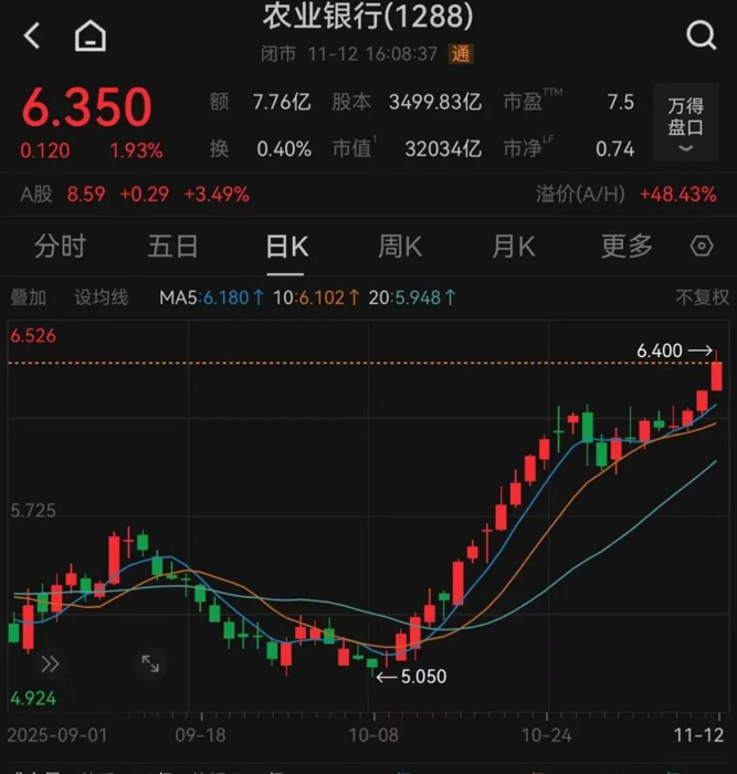 【导读】农业银行创新高,港股涨幅51%,A股已暴涨68%