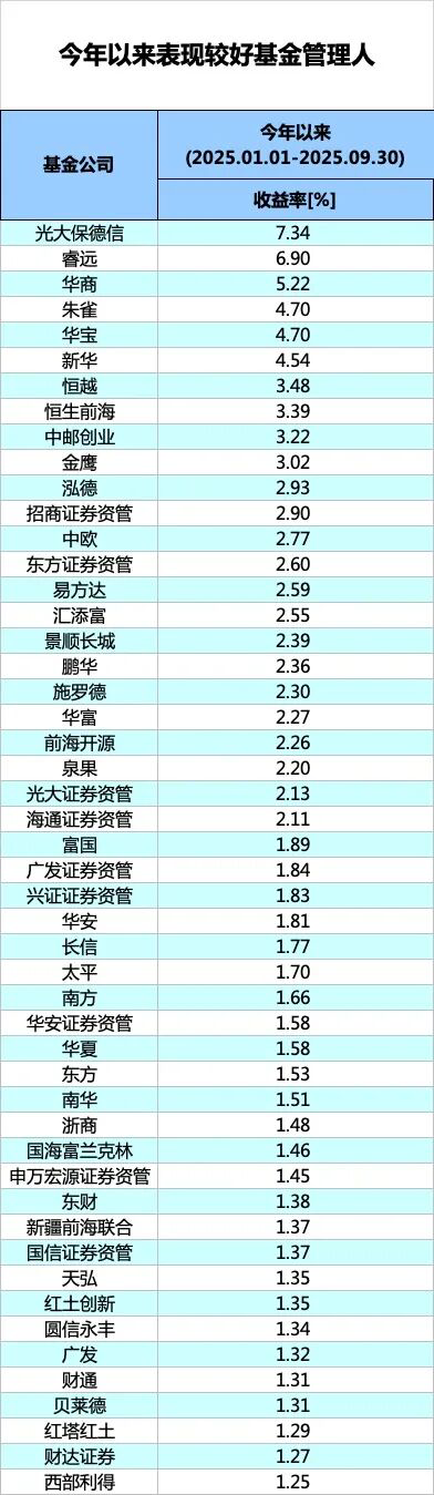 光大保德信、睿远等表现较好
