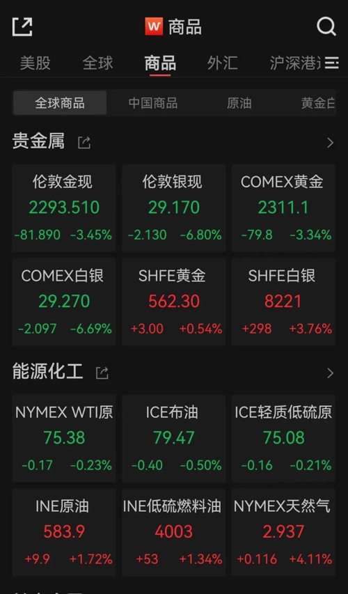 黄金股大跌,哈莫尼黄金跌10.53%,科尔黛伦矿业跌9.31%,埃尔拉多黄金跌8.04%,泛美白银跌7.96%,金罗斯黄金跌7.45%,伊格尔矿业跌7.12%,盎格鲁黄金跌7.05%,巴里克黄金跌6.73%。