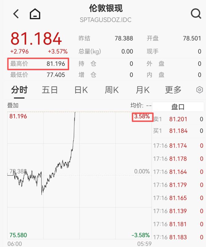 2月20日下午,现货白银突然直线拉升,盘中突破81美元/盎司,涨幅超3.5%。