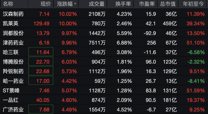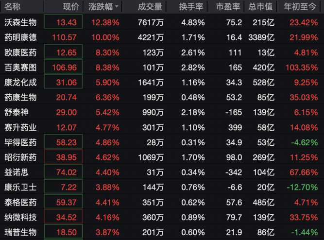 医药板块表现活跃