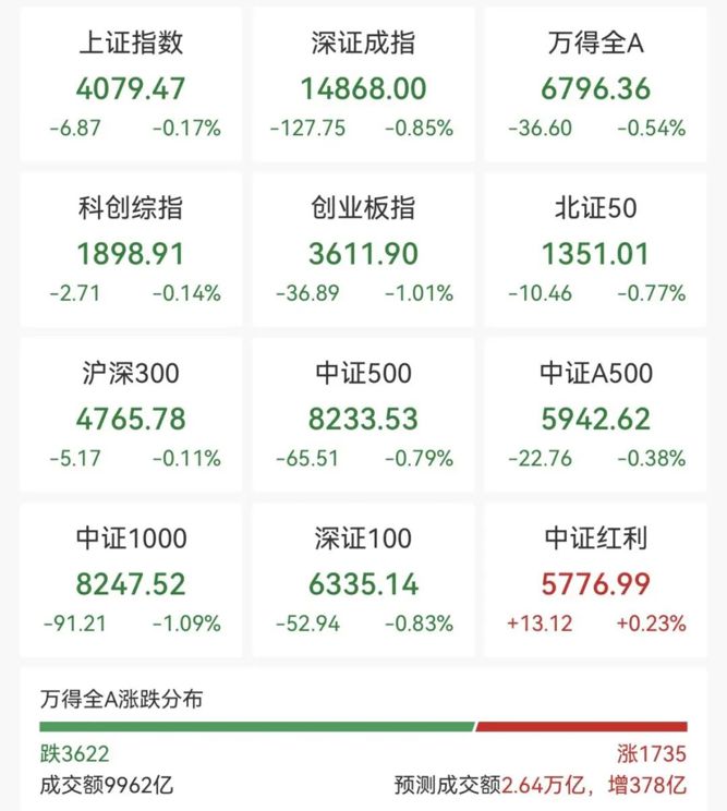 4月28日早盘,A股三大指数走弱,创业板指跌逾1%,截至发稿,沪指跌0.17%,深成指跌0.85%,创业板指跌1.01%。