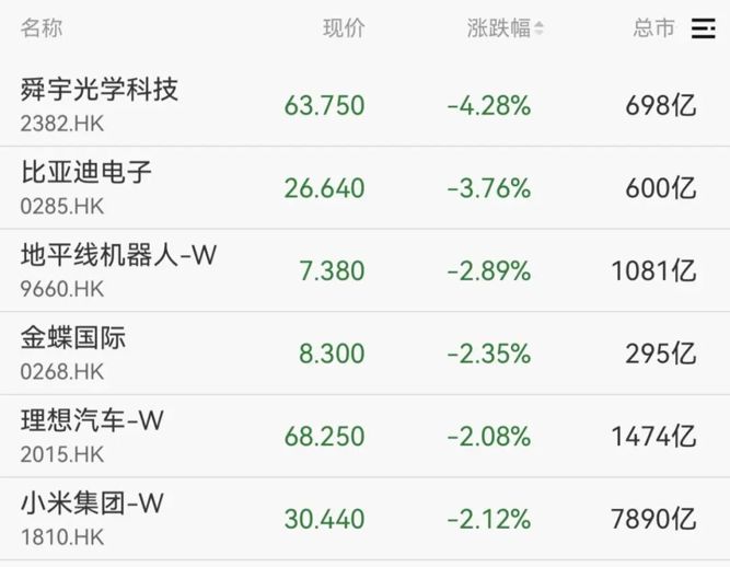 港股方面,恒生科技指数走低,舜宇光学科技、比亚迪电子、地平线机器人等跌幅居前。