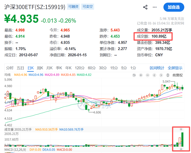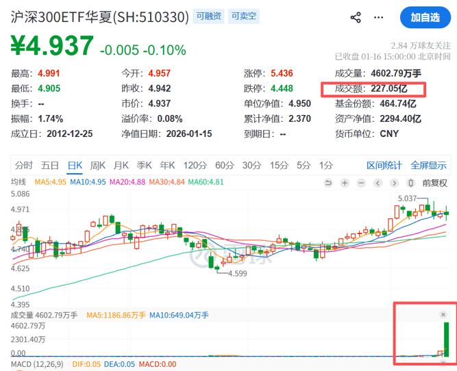 值得注意的是,今日午后宽基ETF持续放量,其中沪深300ETF华夏成交额超220亿元,创历史成交天量。