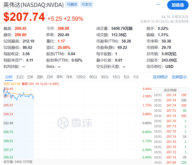 英伟达股价涨近3%。消息面上,此前美国批准了根据微软协议向阿联酋出售芯片的交易。微软的授权许可使该公司能够向阿联酋运送英伟达芯片(包括其更先进的GB300 GPU)。