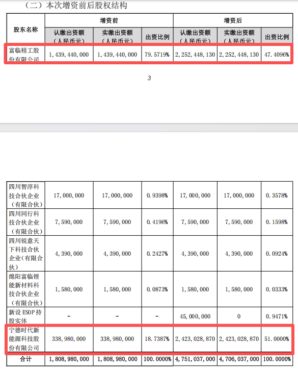 实施增资扩股后,宁德时代成为江西升华的控股股东,持股比例为51.00%;富临精工持有江西升华的股权比例为47.4096%。