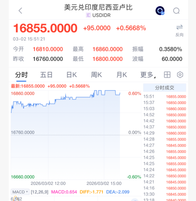 3月2日,由于伊朗战争影响,印尼和印度干预汇市以支撑本币!