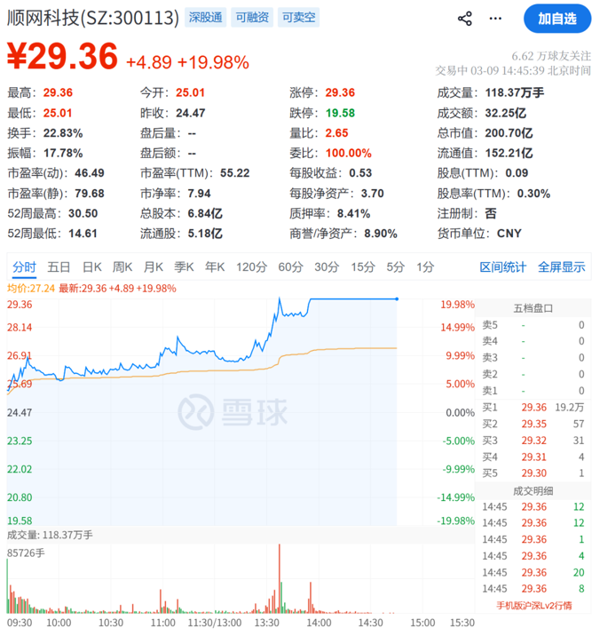 顺网科技同步拉升,走出20cm涨停。