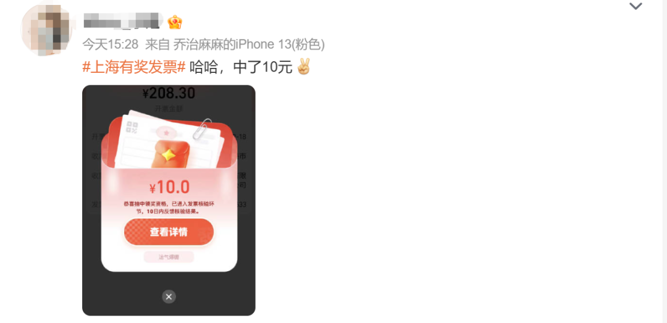 此外,也有不少网友晒出自己的“中奖心得”及攻略,包括平台选择、城市选择、抽奖时段、发票金额等。