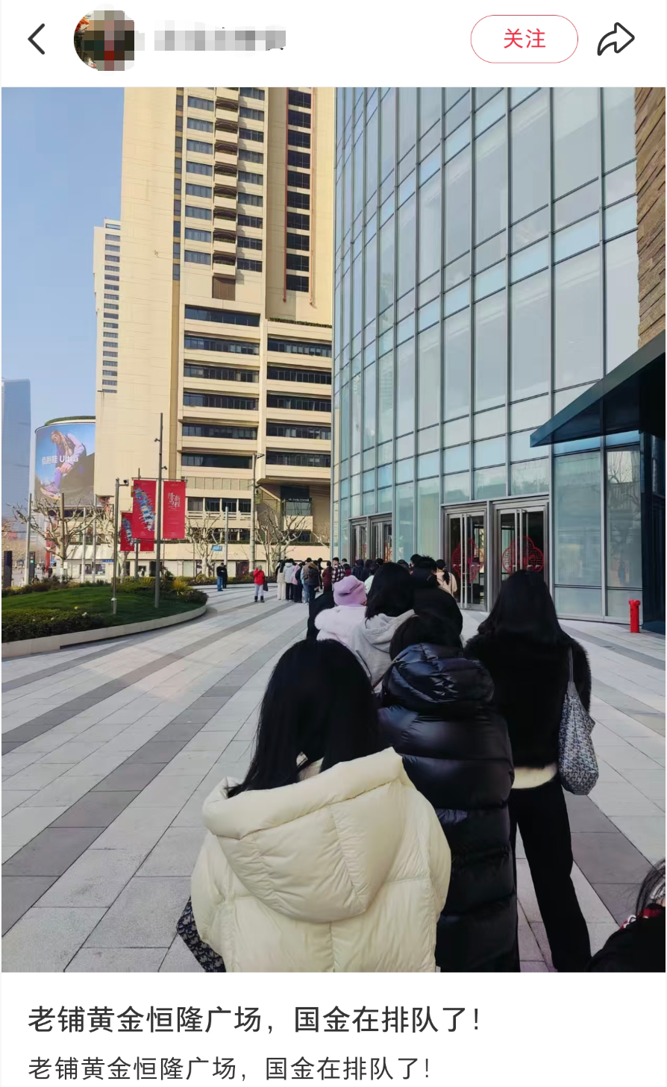 按照此前惯例,每次调价前,老铺黄金相关门店都会出现“排大队”的场景。目前,在社交平台上,已有多名网友晒出在老铺黄金门口排队的情况。
