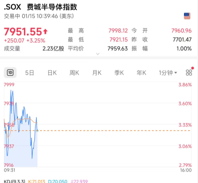 台积电美股涨超6%,创历史新高;总市值突破1.8万亿美元,排名超越博通,位列美股第六。光刻机巨头阿斯麦也暴涨约6%,美光科技、博通涨约3%。费城半导体指数大涨3%。