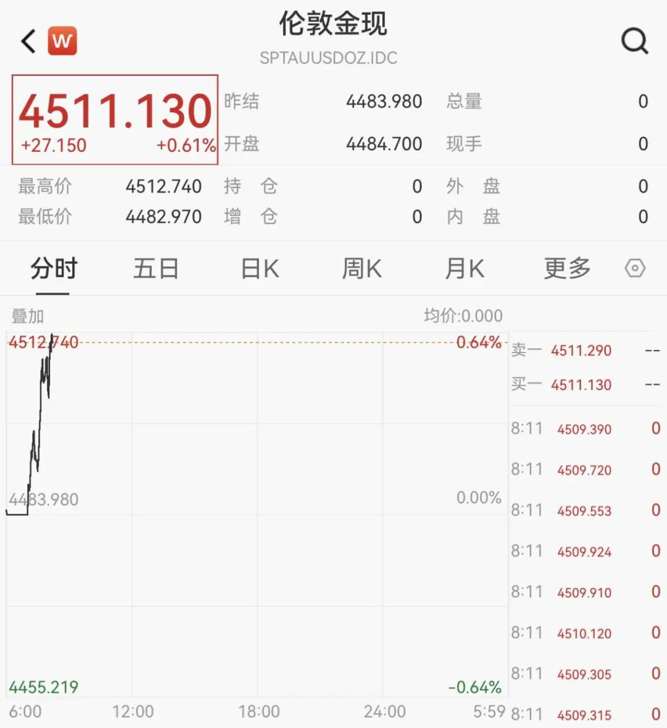 12月24日,现货黄金史上首次站上4510美元/盎司,今年累计上涨超71%。