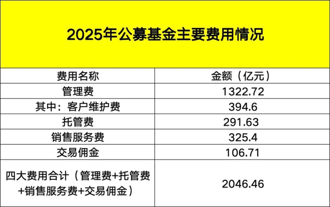 【导读】2025年基金四大费用合计2046.46亿元,同比增长超8.6%