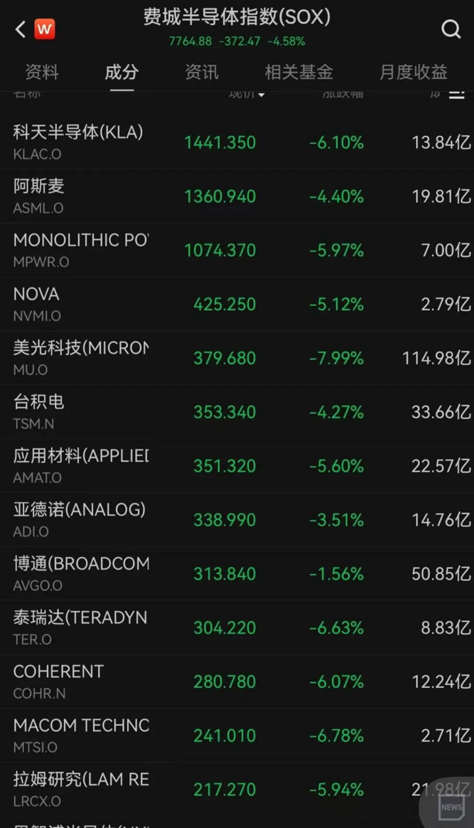 半导体板块跌幅居前
